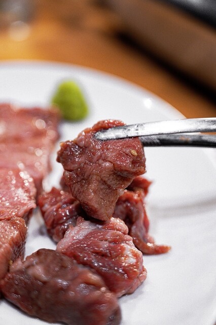 黒毛和牛の雌牛を扱い、注文後に一枚ずつ切り出すスタイル。