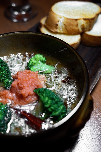 ☑︎アヒージョ"釜あげシラスと博多明太子"¥900
