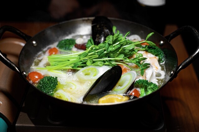 ムール貝や牡蠣、真鯛、ブロッコリーなど旬の食材を加えて仕立てている名物!