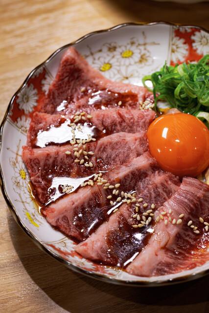 「和牛炙りユッケ」の黄身との絡み、なめらかな舌触り、甘さ控えめのタレ、そして後味の軽さを気に入っていただけて何よりです!