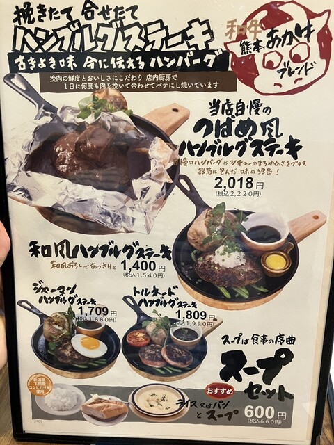 目玉焼きトッピングが好きな連れは、ジャーマンハンブルグステーキです。1880円。