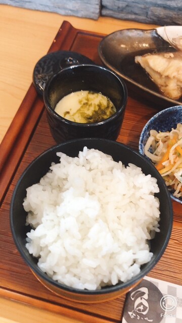 茶碗蒸しに岩海苔か?磯の香りがします。お味噌汁も具沢山で美味しい。