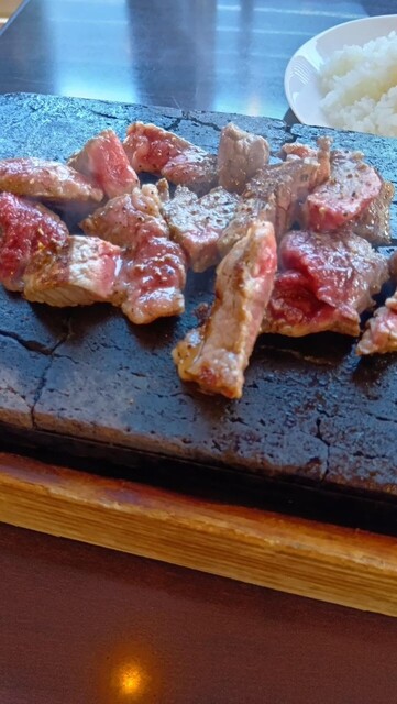 お肉は一口大にカットされ焼いた溶岩石で提供、断面を返しながら焼きます。