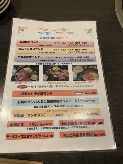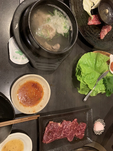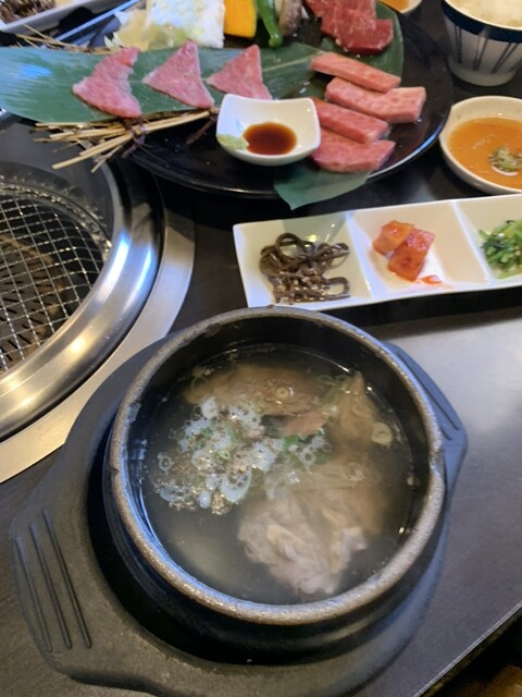 昨日、万博に行って、たいへん疲れたので、体力回復に焼肉屋さんに訪問しました。定番の赤身ランチとテールスープ単品とツラミ刺し単品をオーダーしました。とても美味しかったです。特にツラミ刺しは食べたことがなくて、みんな喜んでいただきました。