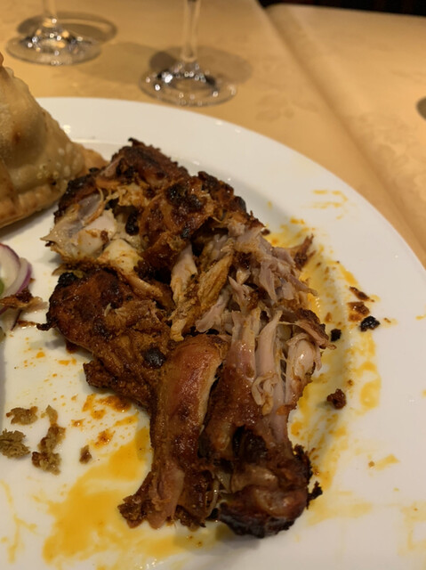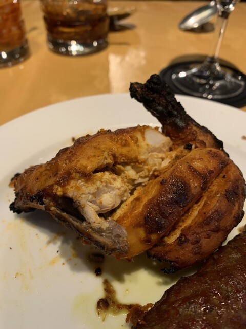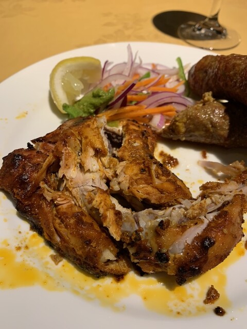 スパイシーなタンドリーソースが肉の旨味を引き立てている。かぶりつきたくなる美味しさ。