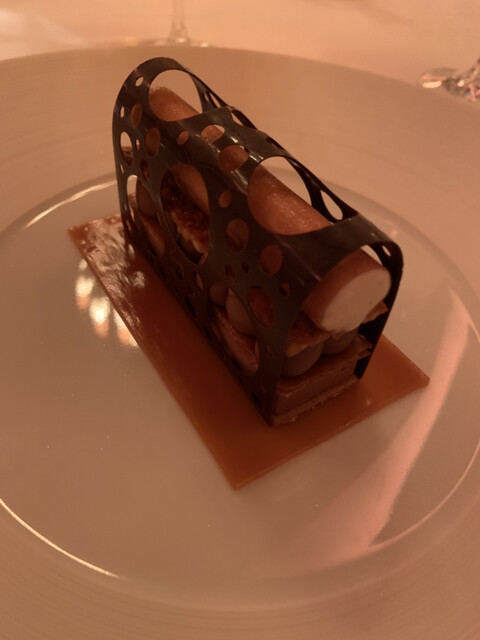 ピジョン以外の料理も総じて満足度が高いが、ヘーゼルナッツ・チョコレート・塩キャラメルのデザートはかなり重い。