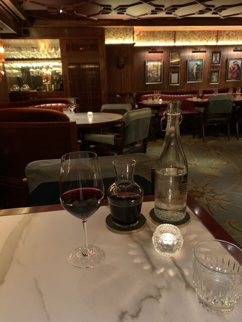 ランチコース・カラフェの赤(375ml)・ボトルのスパークリングウォーターをいただいた。尚、ランチタイムもアラカルトを提供している。