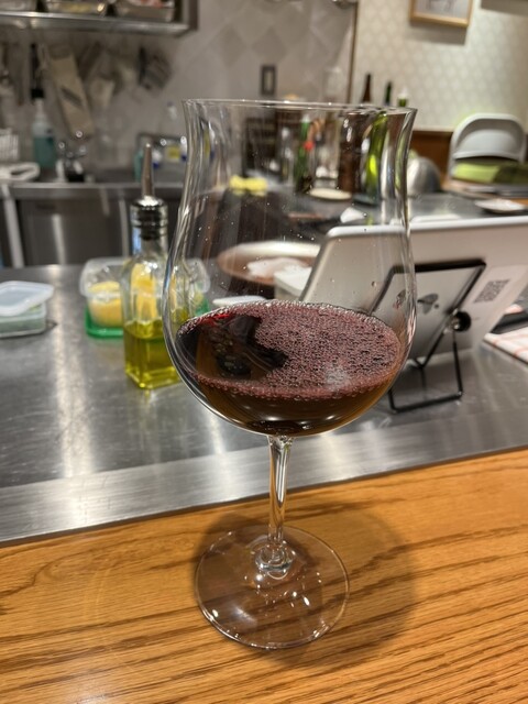 ビールが空いたので、次にグラスワインの赤を頼みました。