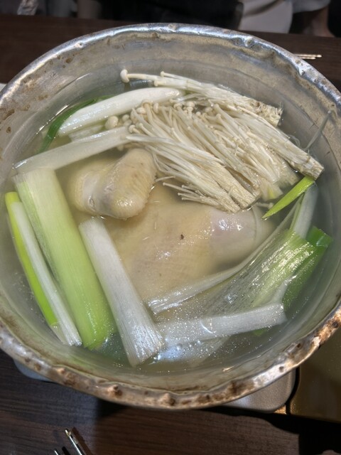 目の前でスプーンを巧みに操ってつくねを作って投入していただけたり、鍋の中の各種具材それぞれの食べ頃を教えてくれますし、頃合いを見計らって鶏一羽をハサミで切り分けていただけたり、お代わりしたい具材を聞いて追加投入していただけたり、こちらの意向に沿った応対が嬉しいです。