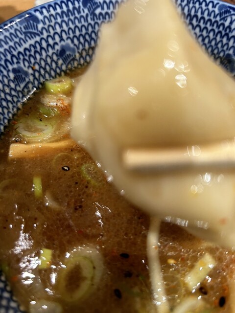 縮れ麺でつけ汁が麺によく絡むため、麺の完食時点では、つけ汁がほんの少し残っている程度のため、この後いただいた割りスープ自体の味がよりよく分かり、割りスープも!手抜きしていない本気度なのだと、店主様、店長様の誠実な思いが伝わってきました、割りスープ自体も!本当に美味しいことが分かりました。