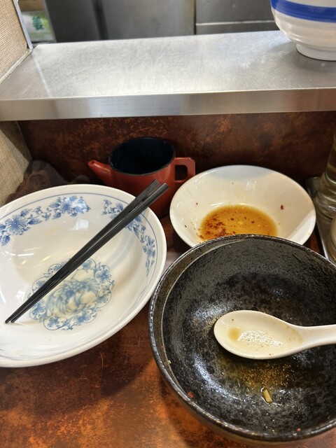 こちらの達人は、お客様への提供が落ち着き、次の調理がない時も、何かしらの仕事をしています。お客様が食べ終わって帰った後も、自ら率先して厨房から客席に出てきて、カウンターを拭いて椅子を直して…、プロです。私が大勝軒横浜西口店に通い初めた頃の少し後に隣に出店した、たまがったの調理場でも、当時の大勝軒横浜西口店の調理場でも、いつでもプロの動きや振る舞いを拝見していました。