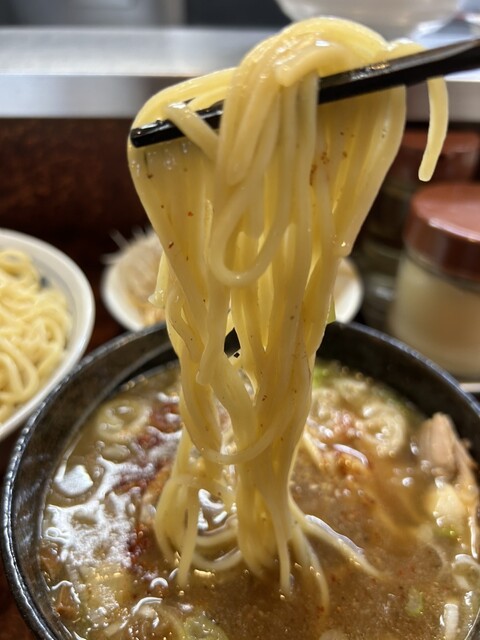 夏場だと、このお店は、茹で上がった麺を、デカいボール、デカい金ザル、流水、そして水道水の温度が冷たくない時期ので氷を投入し、身体全体を使って素早く手抜きすることなく良く洗いして麺を最高の状態にします。この入魂の動きは、見応えがあります。今は冬のため水道水自体が冷たいので、本当に美味しく食べることが出来る、つけ麺の季節です。