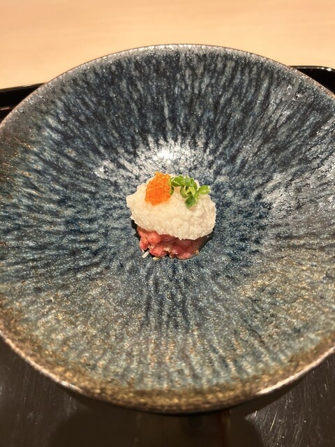 酢物 松阪牛なめろう粗みじん切り山芋のせ