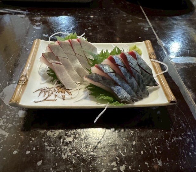 釣ったかさごは唐揚げにしてもらって、後は刺身の盛り合わせ、鯖の刺身(食べたかった!)、鯛のあら煮、ヒオウギ貝の天ぷら、ぶり丼、さざえめしのおにぎりを注文。