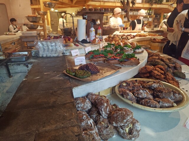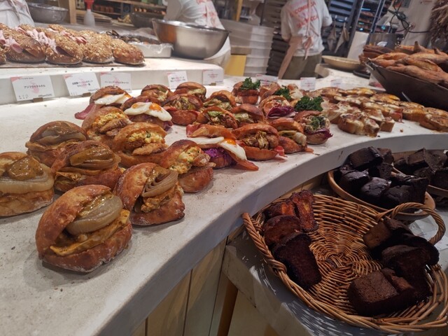 店内に沢山のパンが陳列されていて、お店で焼いているソーセージを挟んだお惣菜パンから、バーガー系、ハードパン系、甘いパン、マリトッツォなどなど