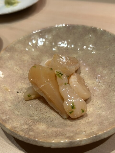 鮑の貝柱の刺身 これ美味かった。鮑の磯のいい香りが最高