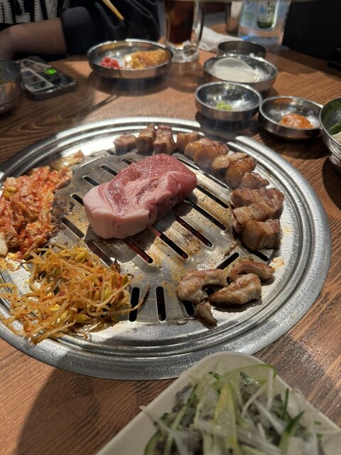 美味しいと話題だったので、予約して行きました。新大久保のサムギョプサルは色々な店舗で食べましたが個人的に1.2位を争うくらい本当に美味しかったです。サムギョプサル2人前、肩ロース、ユッケ、センマイ刺し、スンドゥブチゲを注文。熟成されたお肉は本当に本当に美味しかったです。おかずはおかわりできるのでお肉もおかずも進みます。センマイ刺しも本当に美味しくてすぐ無くなりました。行くなら予約をおすすめします。リピート確定!