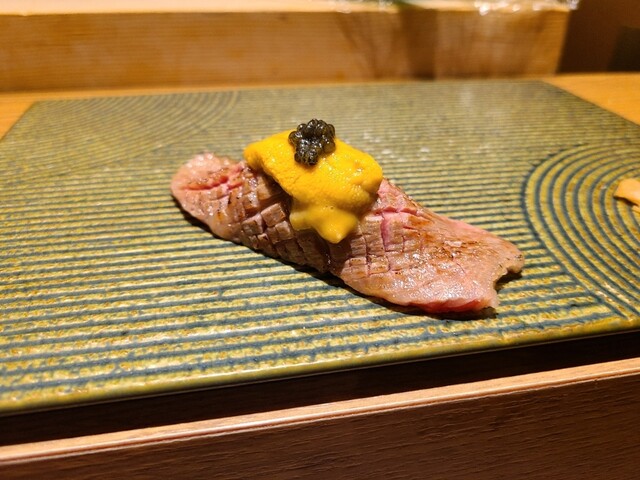 神戸牛の握りが圧巻!肉汁とウニが混ざり合い濃厚な旨味を引き出します。これは凄かった!