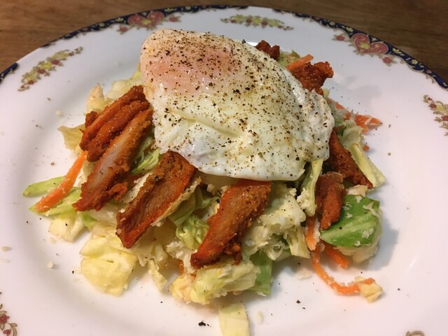 千切りキャベツにドレッシングをかけてとりあえず出しました、みたいなサラダじゃないのが良いです。ヨーグルトはデザートです。