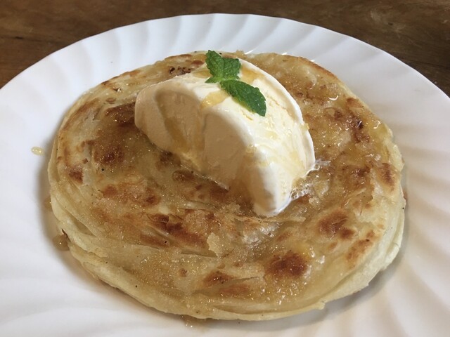 サクサクパラタにギーとハチミツとアイスという禁断の美味しさ!