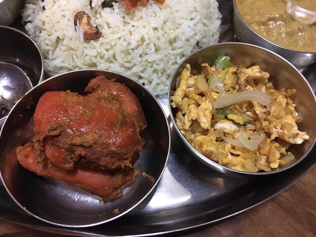 南インドらしいココナッツ香るチキンカレーやマトンチュッカ、ベジカレー、インドの炒り卵、ギーライスなどなど、申し分ないラインナップ。いやー、全部美味しかったです!