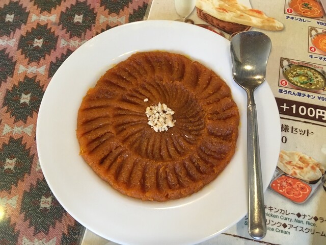 カレーやアチャールと相性抜群なキビのロティですが、にんじんハルワ(¥380)との相性も絶妙だった件