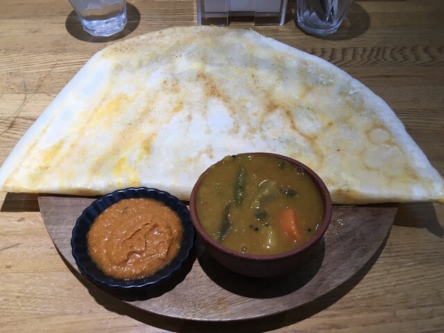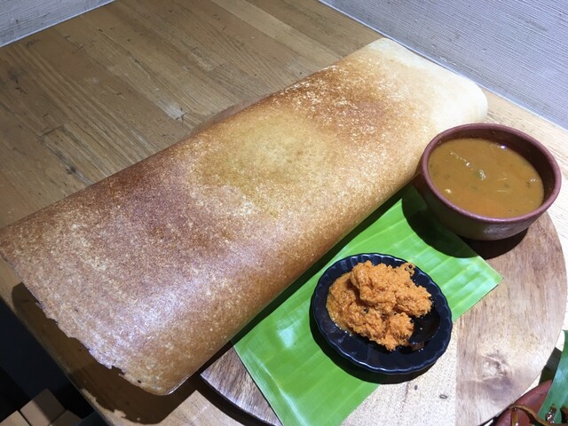 玉子の風味がしっかり感じられるドーサ生地はそのまま食べても美味しいですが、サンバルやチャトニと一緒に食べるとさらに美味しくいただけます♪