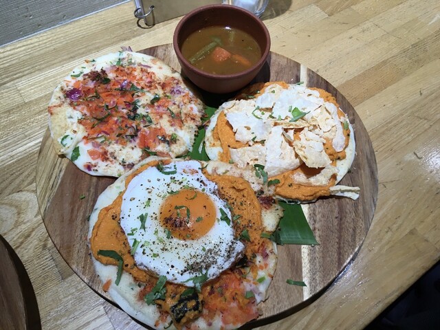 ポロッタをココナッツミルクやチキンマサラなどと一緒に煮込んだ、一人鍋スタイルの料理です。なんとなく味の予想はしていましたが、予想を軽く上回る美味しさでした!スープの染み具合によってポロッタの味わいが何通りも楽しめるし、ココナッツミルクとチキンのスパイシーさが混ざり合ったスープも最高に美味しかったです♪