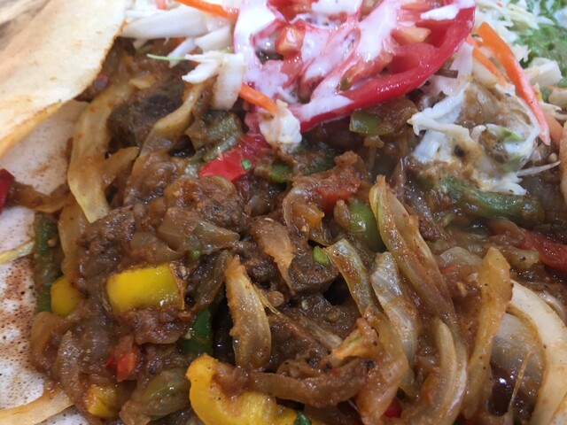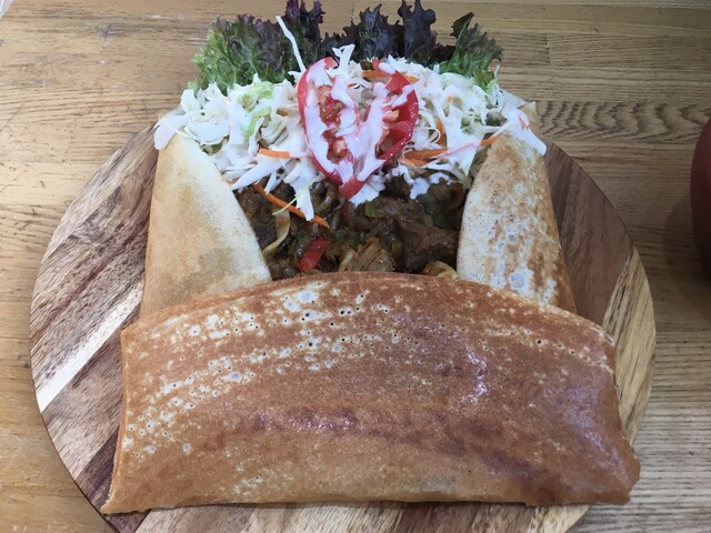 マトンローストとサラダがたっぷり入ったドーサです。ドーサは軽食、というイメージを打ち壊すような食べ応えの美味しいドーサでした♪