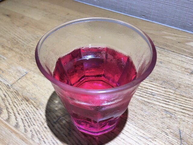 三角ドーサの中に鮮やかなピンク色のじゃがいもマサラ(ビーツ使用)が入ったドーサです。こちらも旨い!