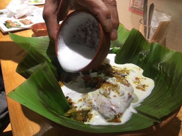 南インド料理のフィッシュモリー(ミーンモイリー)を、ひとり鍋的にいただけるケララキッチン独自のアレンジバージョンです。2月からの限定メニューですが、運良く食べることができました!(要確認&ディナータイムのみではありますが、もう提供しているようです) 固形燃料で加熱するので完成まで15分くらいかかりますが、待つ価値のある美味しさでした!あと、食べた後、1時間くらい体がポカポカしていたので今の時期にピッタリだと思います。