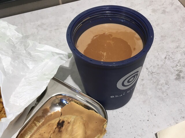 インドのスパイシーコロッケサンドのワダパオとチャイのセットです。飲み物は、まだ飲んだことがなかった煮出しミルクティーにしました。こちらに来たらやっぱスパイスチャイでしょ! みたいな固定観念がありましたが、煮出しミルクティーも良いですね〜!ワダパオやマライトーストとの相性も抜群でした♪