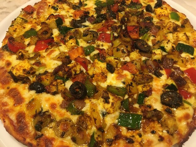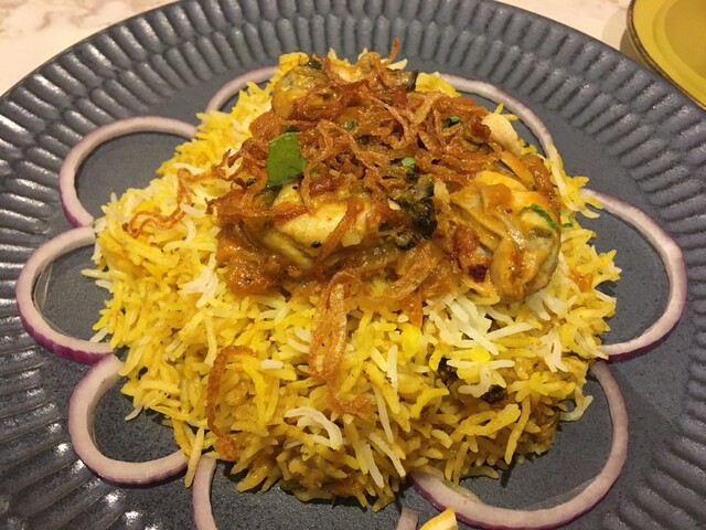 スモールサイズのピザを2種類食べるつもりでしたが、牡蠣ビリヤニがあることが分かって予定変更。プレーンなビリヤニの上に牡蠣マサラを乗せたような盛り付けです。香り高いプレーンなビリヤニと濃厚な牡蠣マサラの組み合わせは最高でした♪