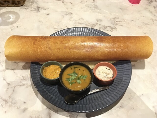 こちらのドーサはまだ食べたことがなかったので注文してみましたが、厚め生地が好みの私にとってドンピシャなドーサ!ザクザクもちもち、ところによりパリパリも楽しめる、私にとっては最高のドーサでした!