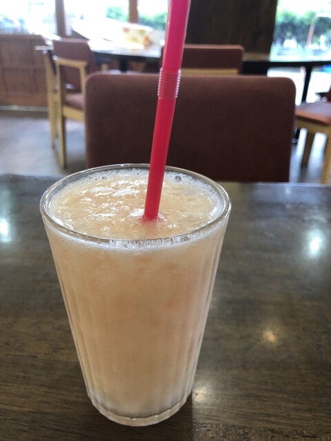 サービスで桃のジュース頂きました