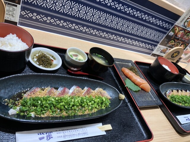 久々の福岡でランチにごま鯖が食べたいと娘のリクエストでこちらへ。大丸百貨店の地下にあるイートインのお店でお昼前にも関わらず席はいっぱい!しばし待ちカウンター席へ。人気のごま鯖定食と自家製明太子を頂きました。