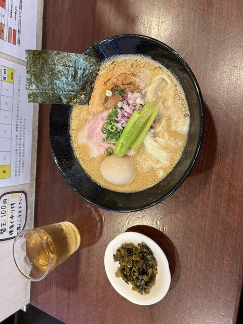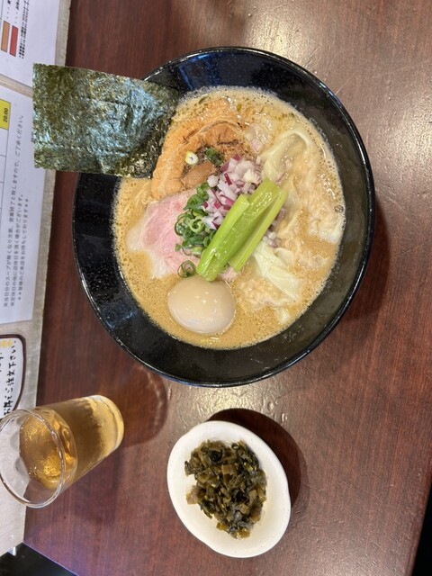 特製濃厚鳥そば 高菜 替玉を注文した。スープはとろみが強くとっても濃厚だが、しつこさが無く食べやすい。高菜を入れると美味しくなった。