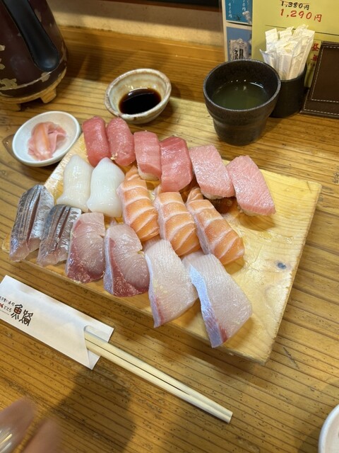 マグロ赤身、中トロ、大トロ、アジ、ウニ、イクラ、ハマチ、イカ、玉子、ヒラメ、サーモン、炙りトロイワシ、炙りのどぐろを注文した。どれも美味しかったです。アジ、マグロが印象的な美味しさでした。