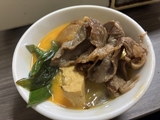 あしらいは玉ねぎ、ネギ、焼き豆腐、糸こんにゃく、麩、三つ葉なのだが、、僕は玉ねぎが好きではないので、その分ネギを増やしてもらうようにお願いして玉ねぎ抜きに!