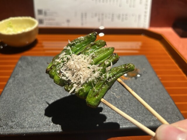 店主は福岡の名店で修行を積み、焼鶏の奥深さと真摯に向き合ってまいりました。使用する地鶏に関しても、都内ではなかなか味わうことのできない希少な銘柄を、生産者様との信頼関係のもと特別に仕入れております。一本一本の串はもちろん、一品料理にも一切の妥協なく手間をかけ、素材の持ち味を最大限に引き出すことを大切にしていますので、お料理全体にその想いを感じていただけたこと、何よりの励みになります。