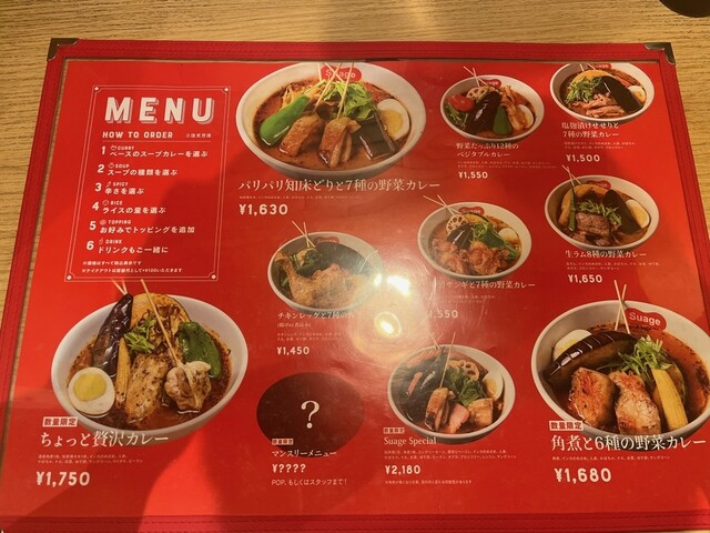 渋谷駅から徒歩1分の「北海道スープカレー Suage 渋谷店」は、地下に広がる隠れ家的なスープカレー専門店である。店内は半個室も備え、落ち着いた雰囲気が漂う。看板メニューの「パリパリ知床鶏と野菜カレー」は、素揚げされた鶏肉と大ぶりの野菜が特徴で、スープは定番の「すあげスープ」とイカ墨を加えた「プラススープ黒」から選べる。辛さやライスの量もカスタマイズ可能で、チーズや角煮などのトッピングも充実している。客層は若者から家族連れまで幅広く、ランチやディナー、買い物の合間など様々なシチュエーションで利用しやすい一軒である。
