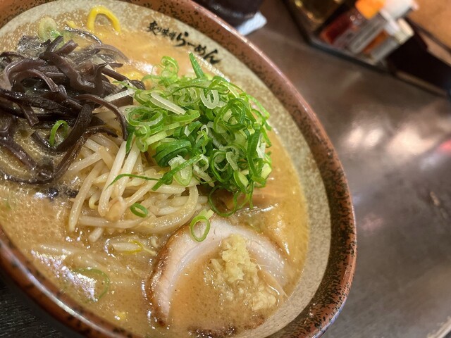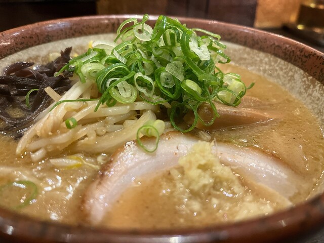札幌由来のラーメン店のためチヂリ麺が使用されている点は拘りを感じ嬉しいポイント。生姜を好きなタイミングで溶かせる点も札幌有名味噌ラーメン店を模倣されている。