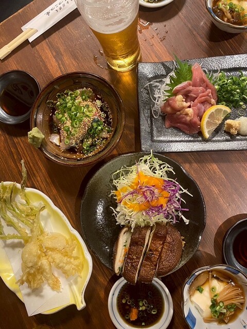 こつこつ庵は、城下町の雰囲気を感じさせる趣ある外観で、店内は木造の温もりが漂い、落ち着いた和の空間が広がっている。郷土料理を中心としたメニュー構成で、だんご汁やとり天、琉球など大分の味を存分に楽しめる。どの料理も丁寧に作られており、素朴ながら深い味わいだ。観光客はもちろん、地元の年配客や家族連れの利用も多く、旅行中のランチや落ち着いた夕食に最適な一軒である。