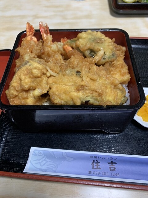 天丼を頼みました。天丼には衣がパリパリなものと、しなっとしたタイプとありますが、私はどっちも好きです。住吉の天丼はシナっとしてました。天ぷら屋さんの専門店のようなクオリティではありませんが、美味かったです。タレの味がもうちょっと濃くてもいいかな。