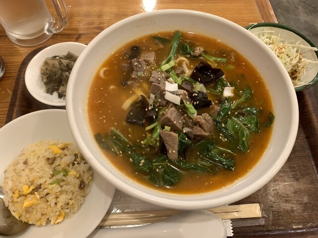 ランチメニューから麺類を選んだのですが、名前を忘れてしまいました。日本人好みに味をアレンジしてない、本番の中国そのままの味を感じます(中国には2回しか行ったことないけど)。今まで経験したことない味なので、新鮮で、そして美味しいです。香辛料がすごく効いてるとか刺激の強いものではなく、出汁がうまいんだが、何の出汁なのかよくわからない。お肉もなんか不思議な感じです。チャーハンはそんなでもなかったです。他の料理もどんな感じなのか気になり、また来たいと思いました。