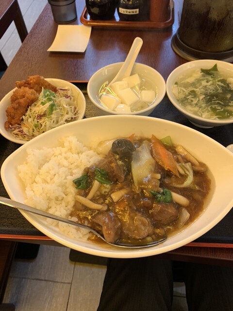 お昼に寄りました。本格中華をランチのお手頃価格で味わえます。ランチメニューの中から、麺類かご飯ものかで迷いましたが、写真のご飯ものをチョイス。これ以外に、汁物、小皿料理(この日は唐揚げ)、デザート(杏仁豆腐)がついて来ます。お肉は牛肉で、本格的な味で美味かったです。そして量も多かった。食いきれないほどに。周りの人は一人で来てる人が多く、マーボー豆腐を頼んでいる人が多かったです。それもうまそうでまた来たいと思いました。