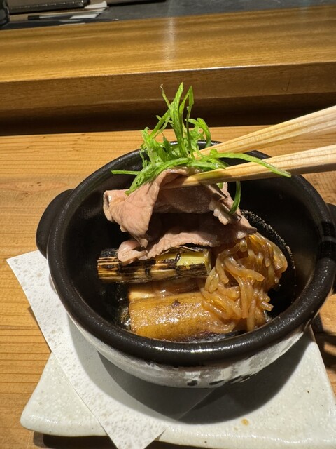 紬の八寸(残念撮り忘れ)に始まり、缶紬、前菜3種〜ロールキャベツ、甘鯛、和牛の小鍋、土鍋ごはんで締めます。