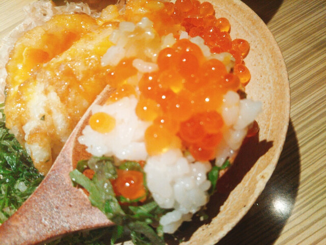 何がズルいって、いくら温玉天ご飯。茶碗の上にいくらがたっぷり。