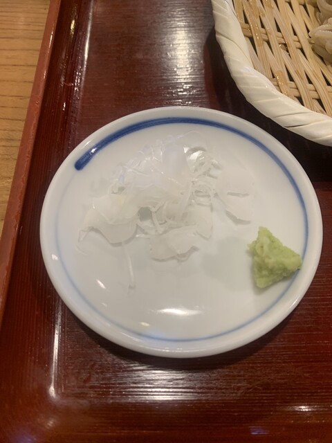 晒して淡い刻み葱と本山葵の薬味、もり汁の徳利をそば猪口に薄く注いで、蕎麦を手繰った。