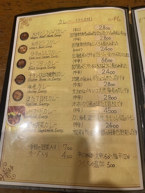 シーフードカレーと仔牛のミルクカレーはないとのこと。